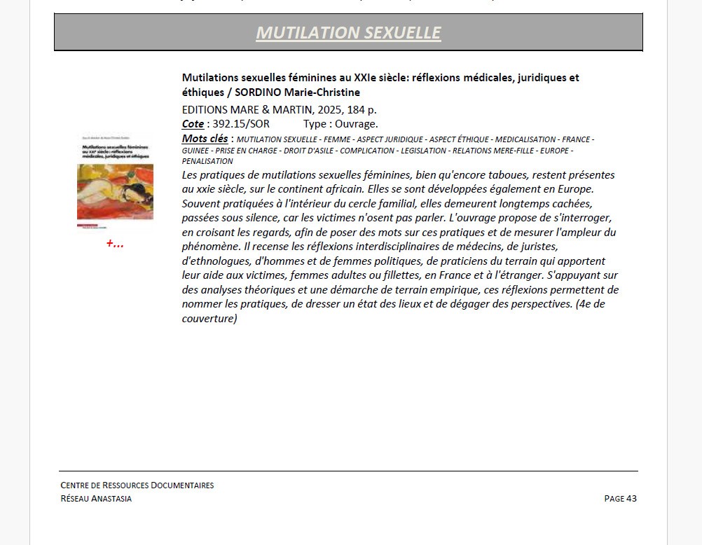 • Mutilations sexuelles féminines au XXIe siècle : réflexions médicales, juridiques et éthiques